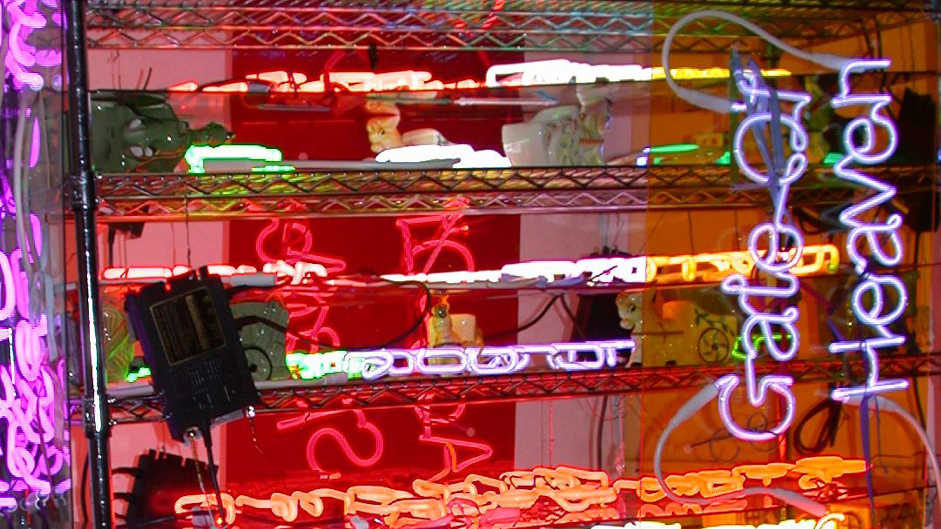 Jason Rhoades (1965–2006) emerged in the 1990s as one of the most formally and conceptually rigorous artists of his time. During his short but prolific career he became known for highly original, large-scale sculptural installations, which incorporate various materials inspired by Los Angeles car culture and his upbringing in rural Northern California, as well as by a mixture of historical and contemporary global and regional influences that he explored throughout his life. Until his untimely death at age 41, Rhoades carried out a continual assault on aesthetic conventions and the rules governing the art world, wryly subverting those conditions by integrating them into his practice. He conceived his works as part of an ongoing project, to which objects were continuously added, assembled, and reassembled in various configurations. Through his unique visual aesthetic and the conceptual depth of his work, Rhoades complicated the boundaries between the sacred and the profane, the physical and the immaterial, challenging social, political, and linguistic structures and revealing the complexities and contradictions of our globalized, interconnected era.