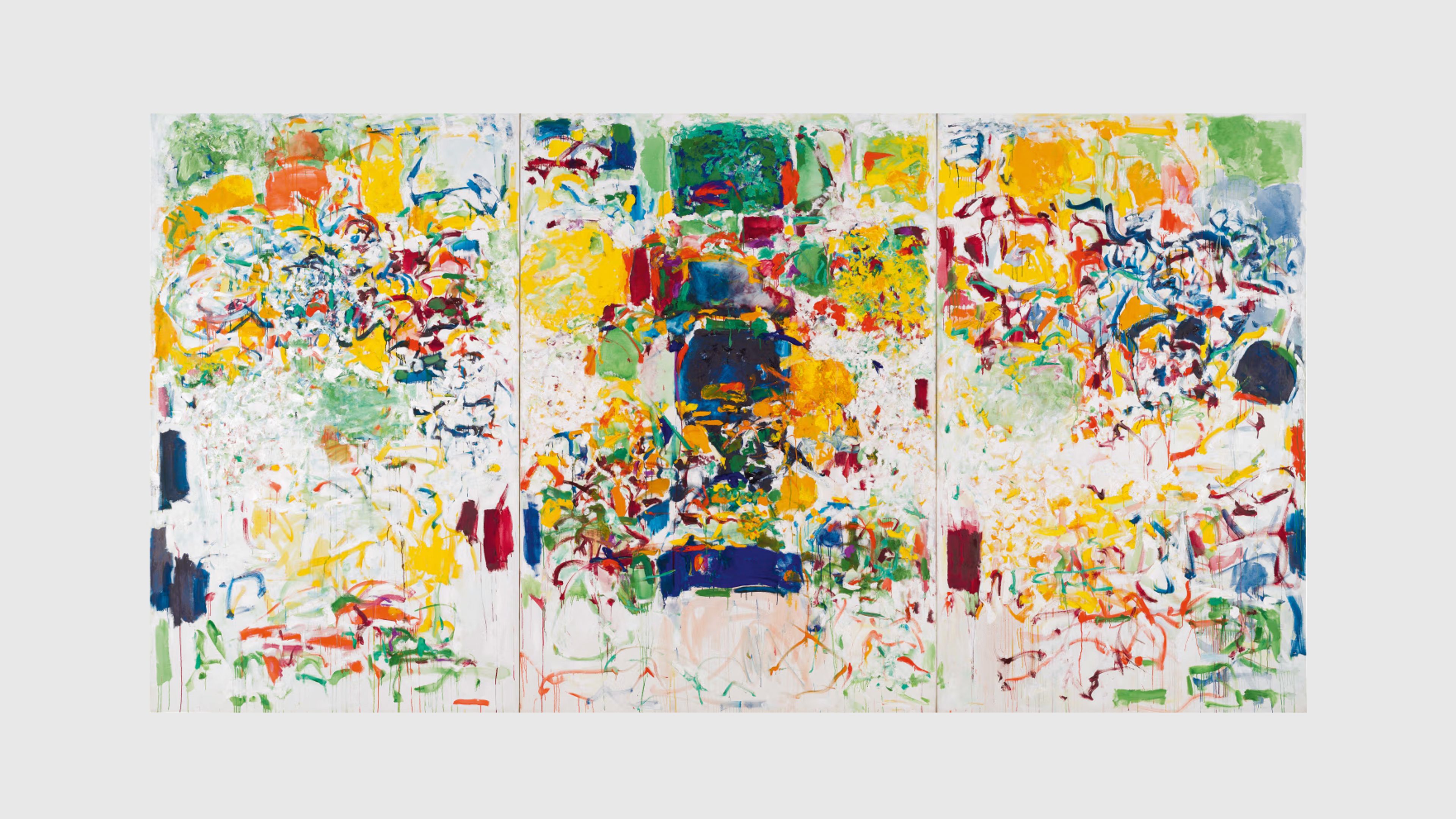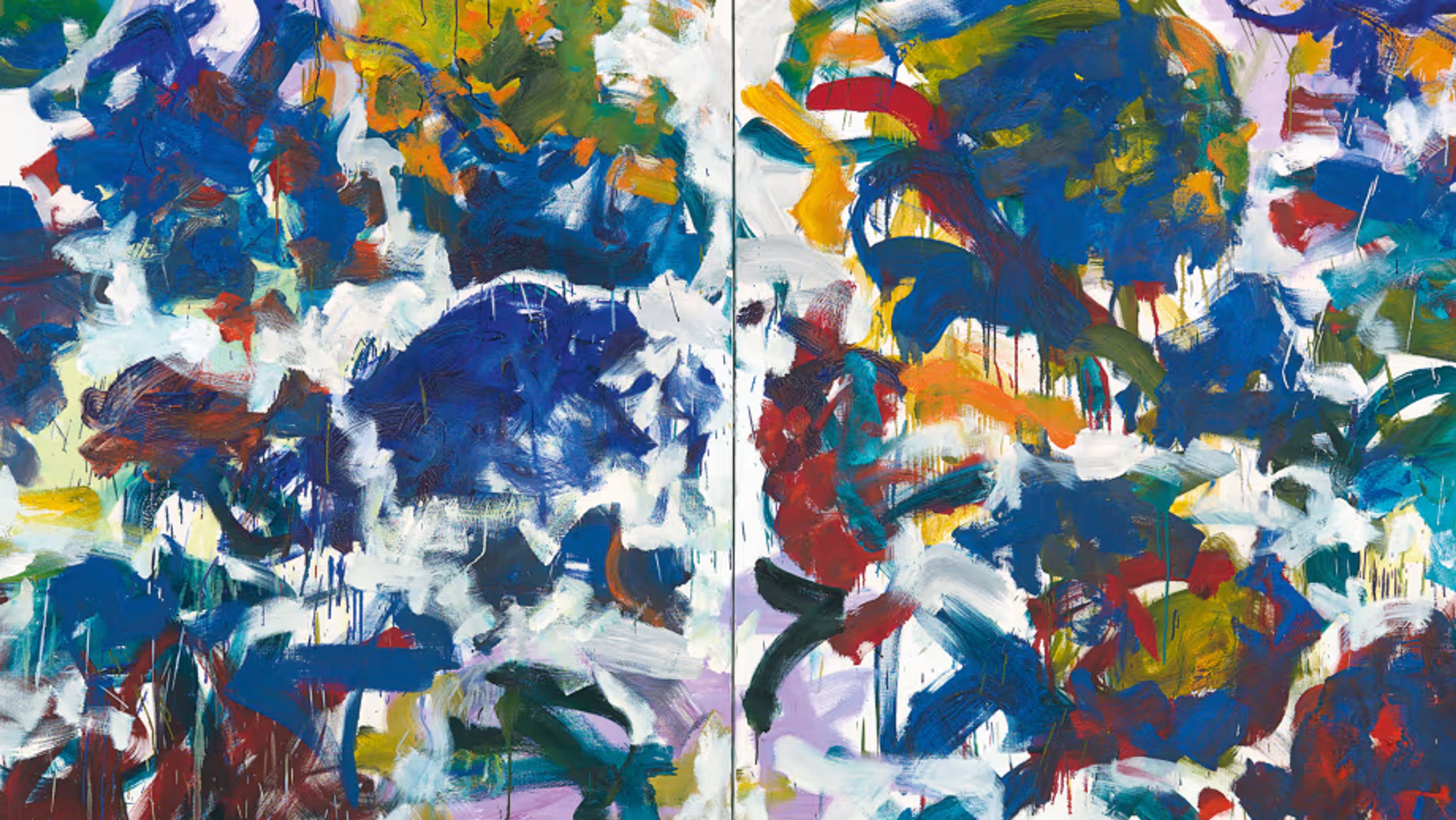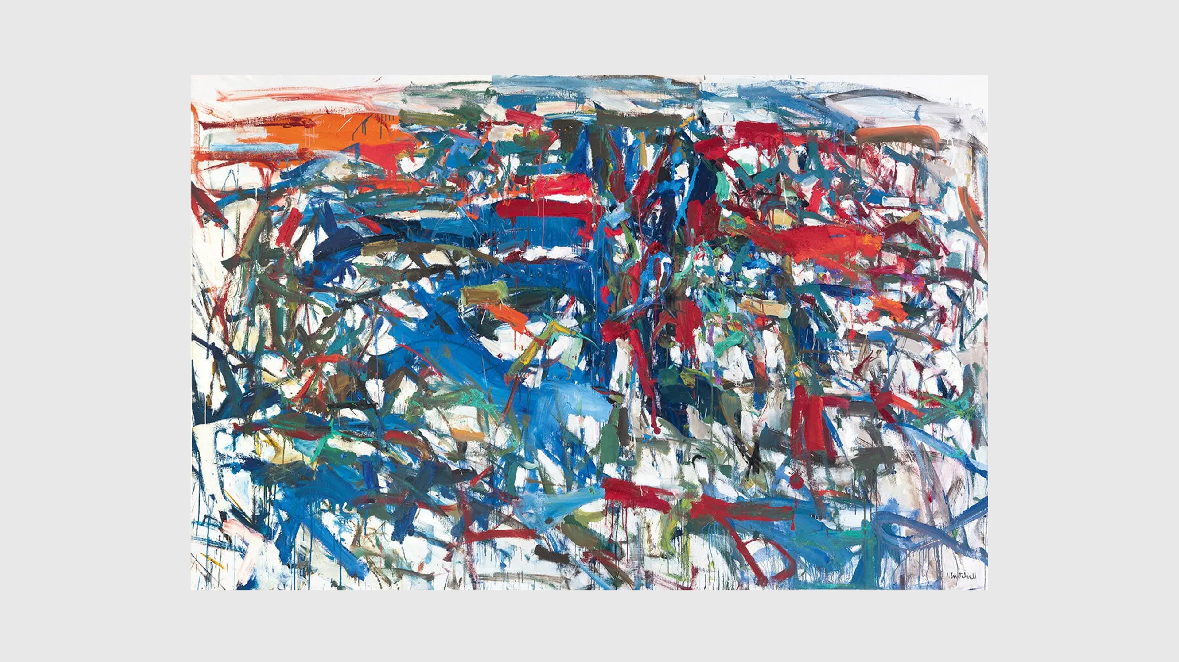 Joan Mitchell (1925–1992) established a singular visual vocabulary over the course of her more than four-decade career. While rooted in the conventions of abstraction, Mitchell’s inventive reinterpretation of the traditional figure-ground relationship and remarkable adeptness with color set her apart from her peers, resulting in intuitively constructed and emotionally charged compositions that alternately conjure individuals, observations, places, and points in time.