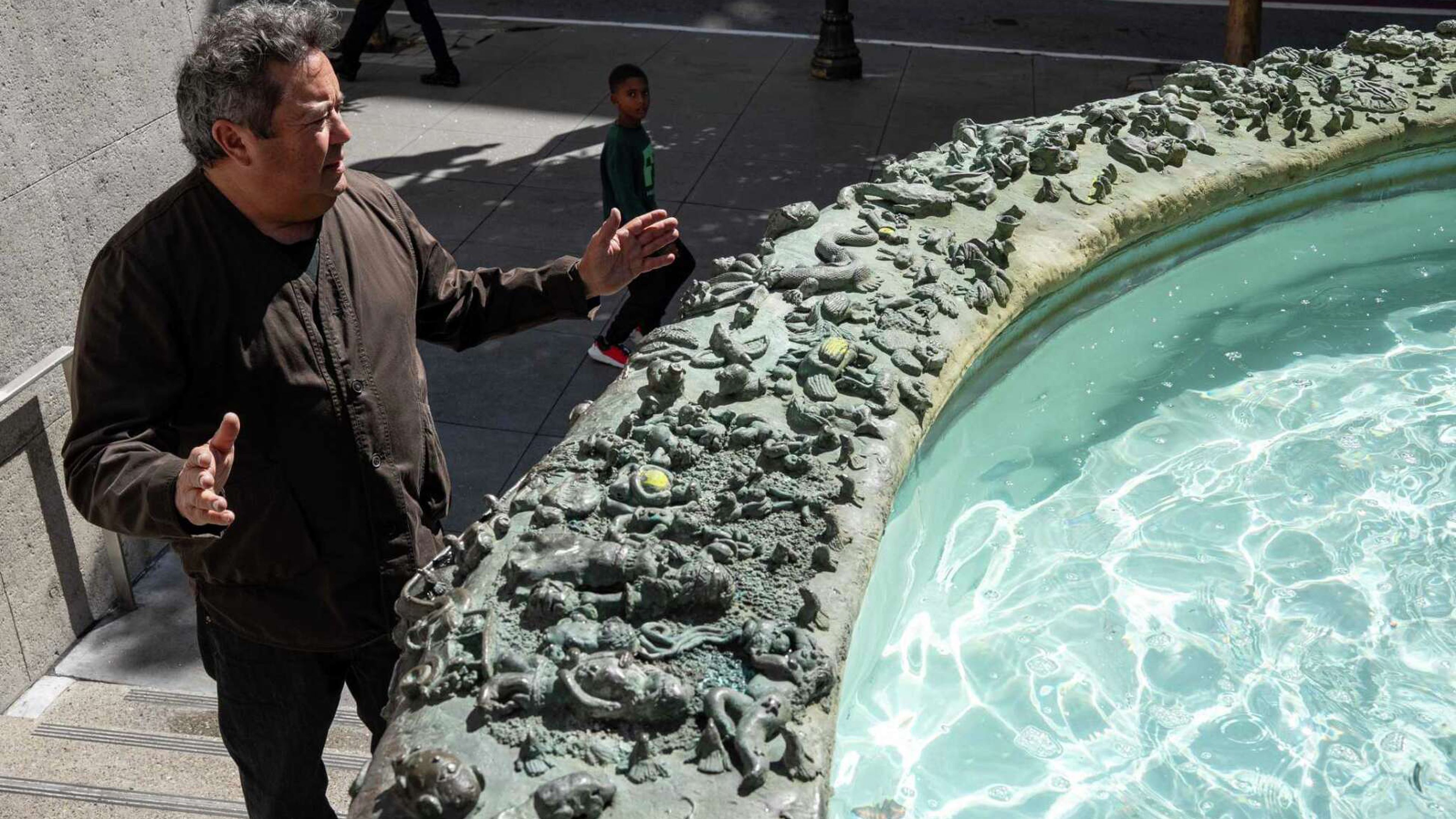 In addition to her wire sculptures, Asawa is well known for her public commissions, particularly in San Francisco and the wider Bay Area. These include the much beloved Andrea fountain in Ghirardelli Square (1966-1968) and the San Francisco Fountain outside the Grand Hyatt Union Square (1970-1973), the latter of which includes hundreds of baker’s clay images molded by local schoolchildren, friends, and other artists cast in bronze.