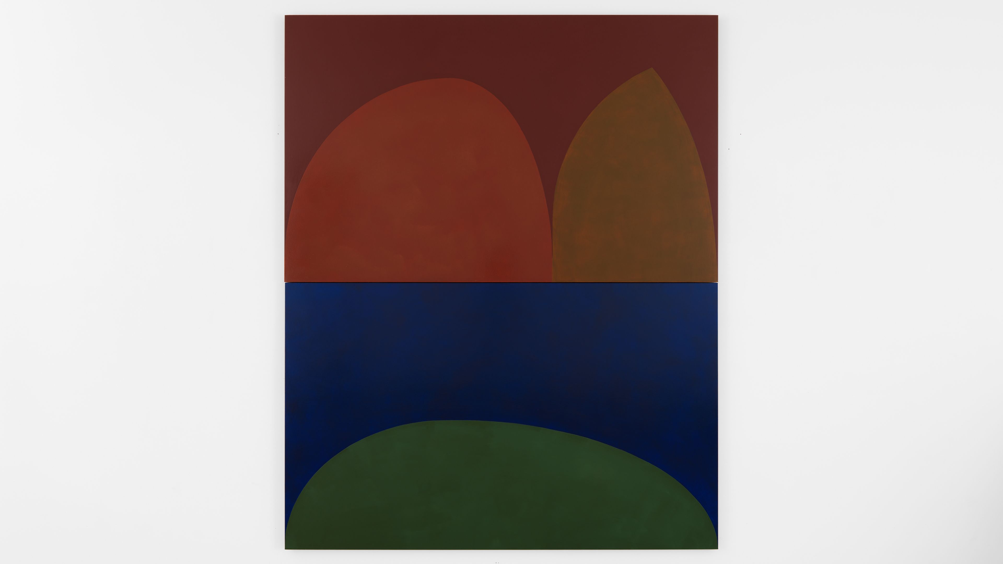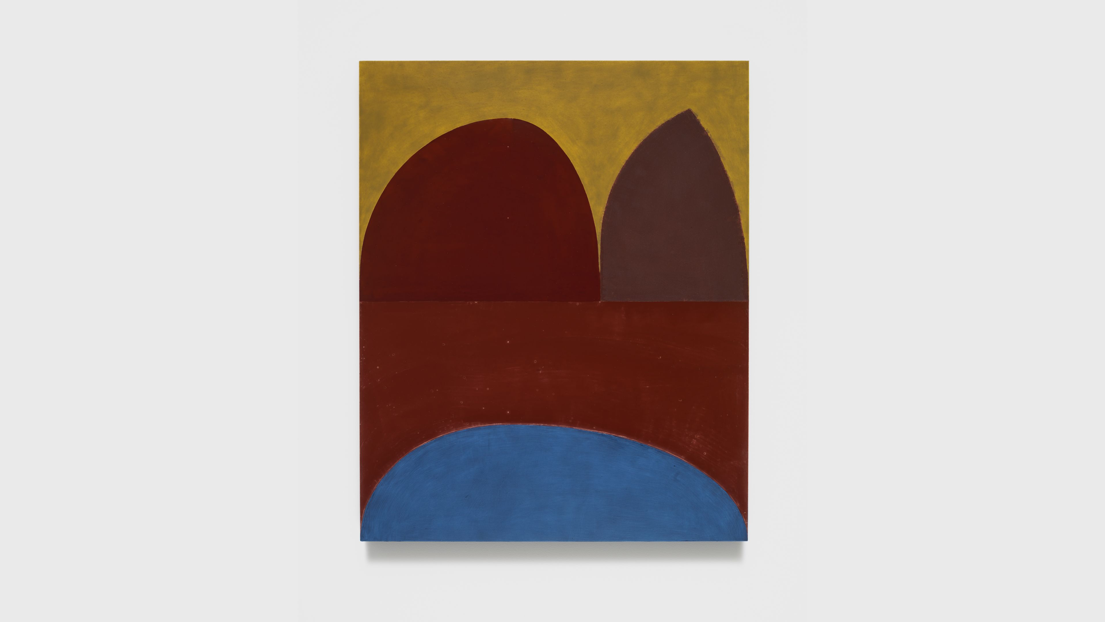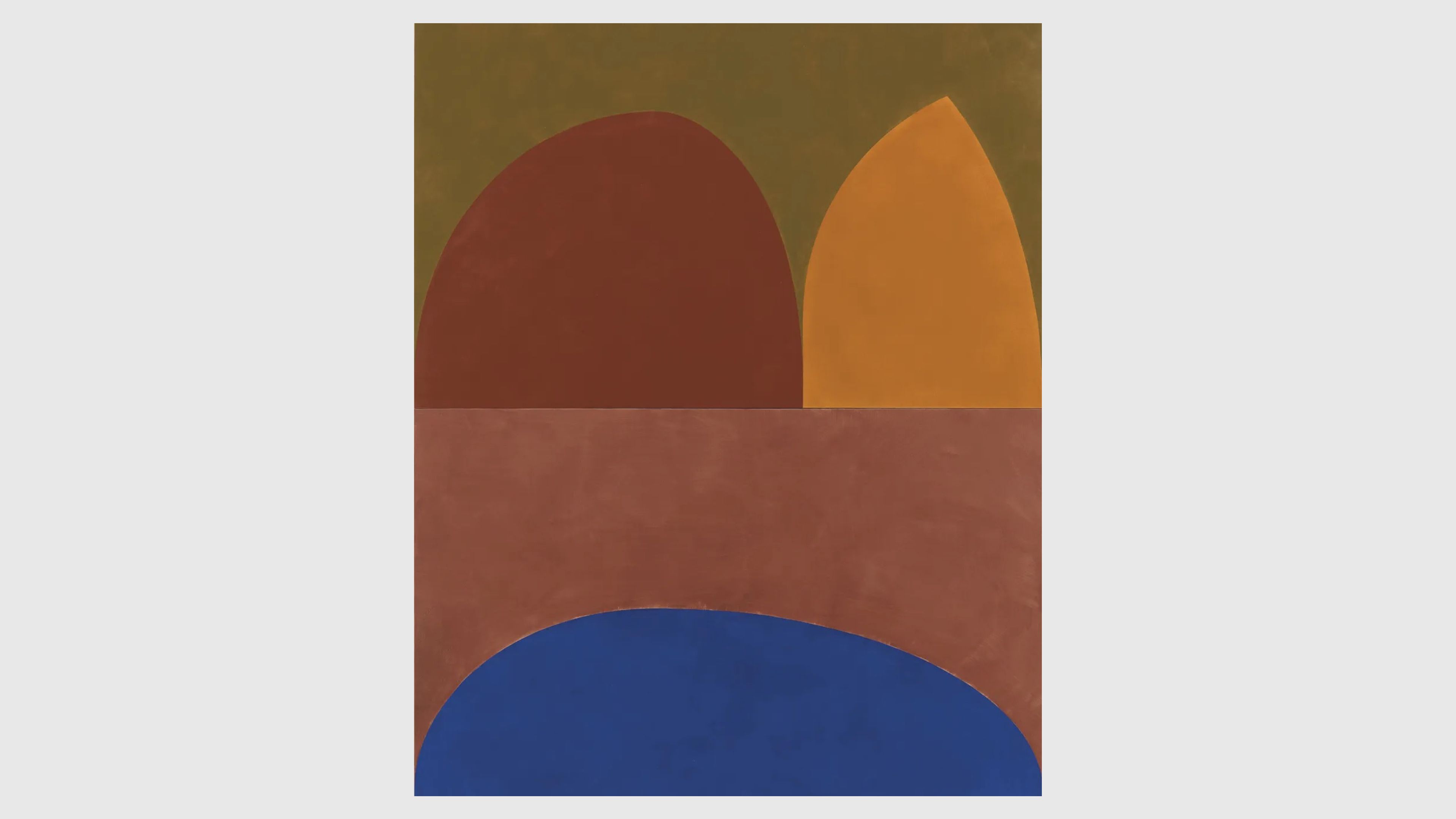 In Frecon’s paintings, composition serves as her foundational structure, holding color, material, and light; her compositions are characterized by asymmetrically balanced forms in precise spatial and proportional relationships. However, she has noted, “I use measurements for visual reasons, to achieve an unbalanced equilibrium.” The artist mixes pigments and oils to differing effects, and the visual experience of her work is heightened by her almost tactile use of color and contrasting matte and shiny surfaces. Colors and surfaces vary in terms of density and reflectivity, and areas in the compositions frequently shift between dark and light. Figure can become ground and ground can become figure in, as the artist defines it, a back-and-forth of full and empty space.