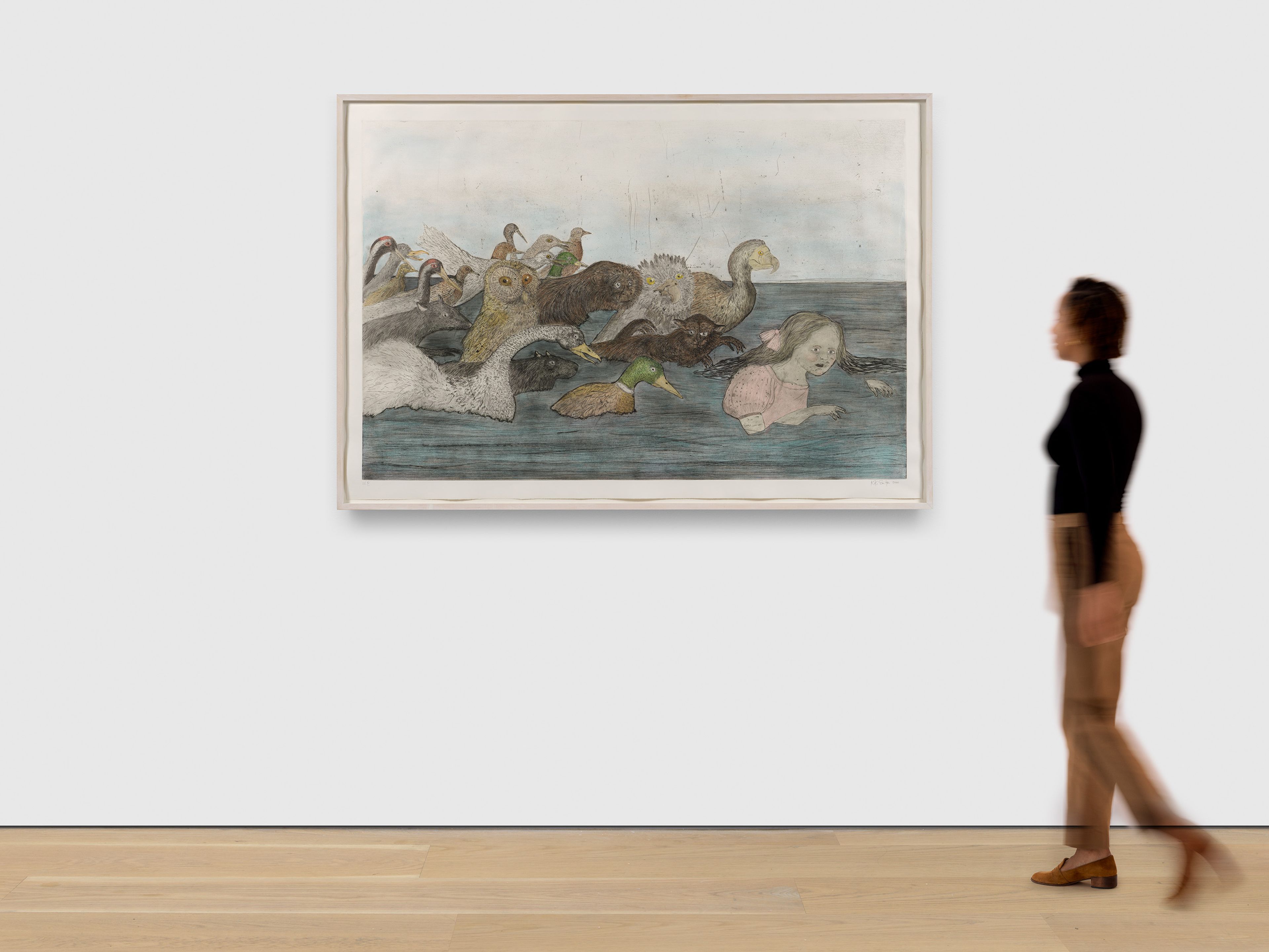 Etching, aquatint, drypoint, and sanding with hand-watercolored additions on En Tout Cas paper