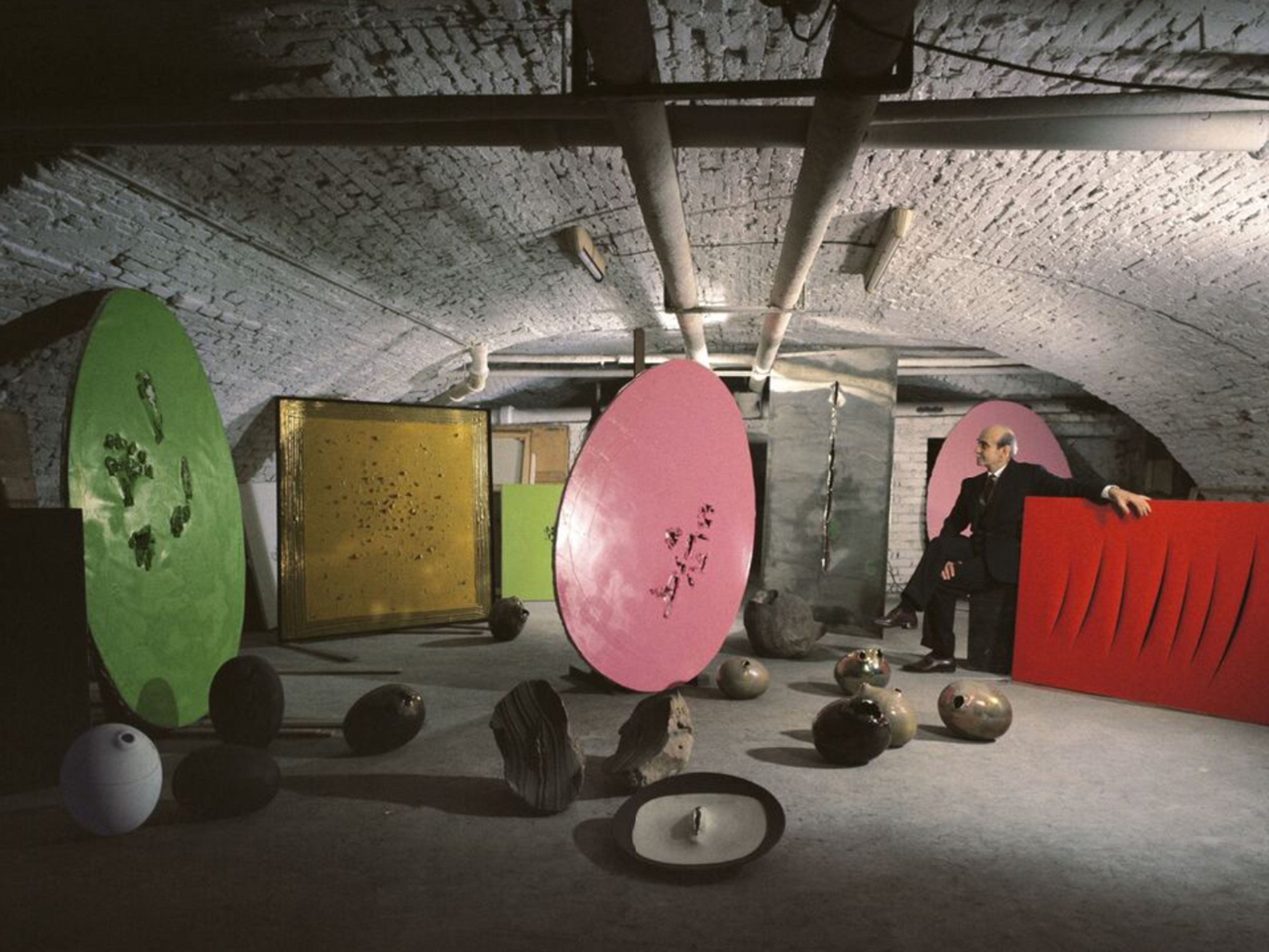 Lucio Fontana, Milan, 1963. Image: Ugo Mulas. © Ugo Mulas Heirs. Artwork: Lucio Fontana © 2025 Artists Rights Society (ARS), New York / SIAE, Rome