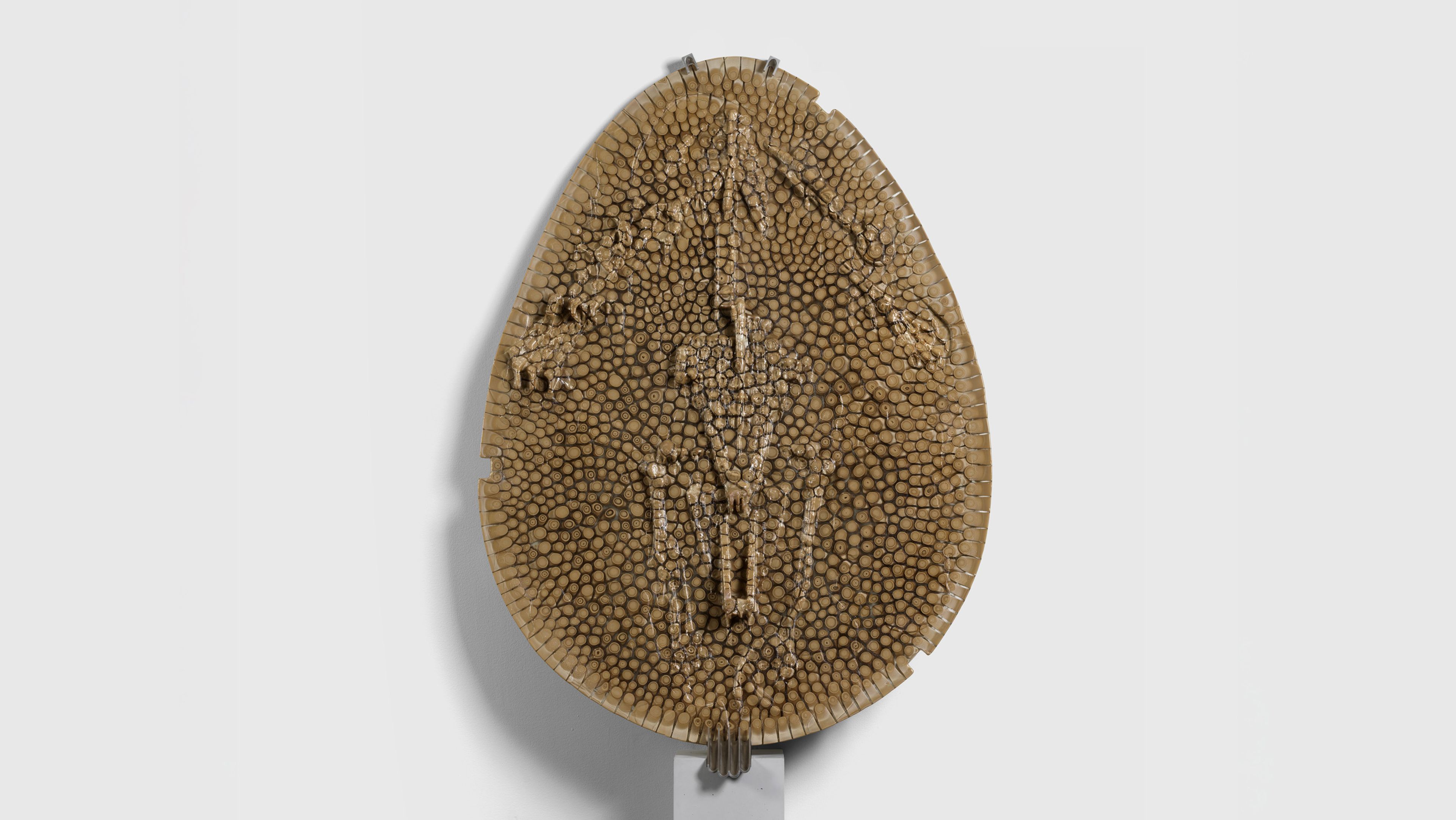 Ursuţa’s sculptures are an epilogue to Lucio Fontana’s La Fine di Dio paintings—the end of The End of God. In the 1960s, Fontana punctured egg-shaped canvases to open painting up to infinity, a gesture of optimism in an era of space exploration. Ursuţa retains the cosmic oval but inverts its meaning: where Fontana sought expansion, she shows implosion. Her panels are sealed worlds of vitreous black humor, resonating not with visions of the beyond but with the static of the image-world. They announce a culture that has retreated from the horizon of collective imagination into an endless circulation of dazzling but empty images.