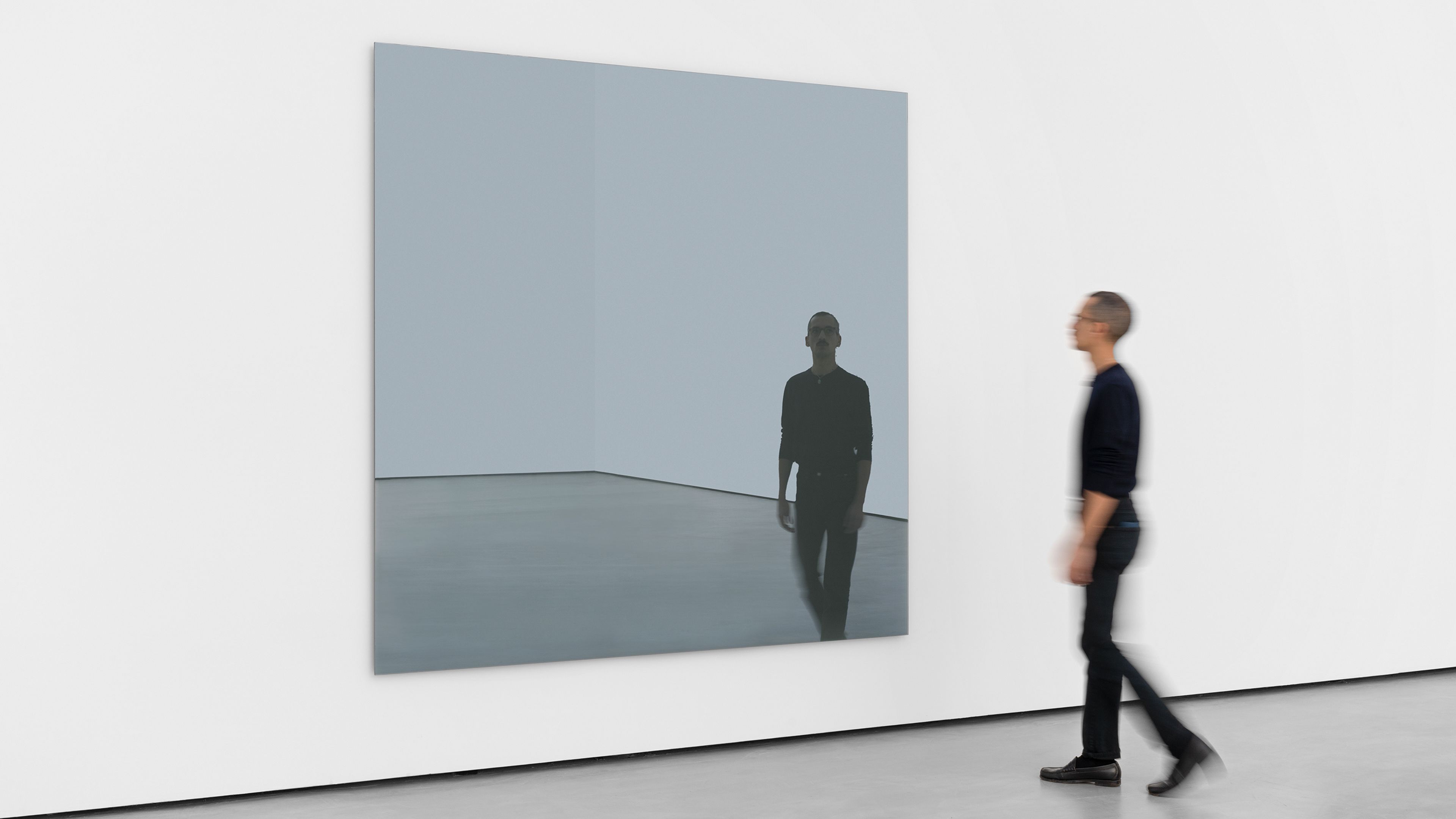 “The mirror set a new zero point. Unlike a painting, there is no artistic, painterly reflection to convey delay. Instead, the mirror is a pure ‘reaction machine.’ It sees everything and remembers nothing; every image is created and destroyed in the same instant. The mirror reveals pure transience and hence is the purest manifestation of Richter’s intention yet: to eliminate himself as the author while retaining maximum presence by engendering images in the viewer without having to paint them.”