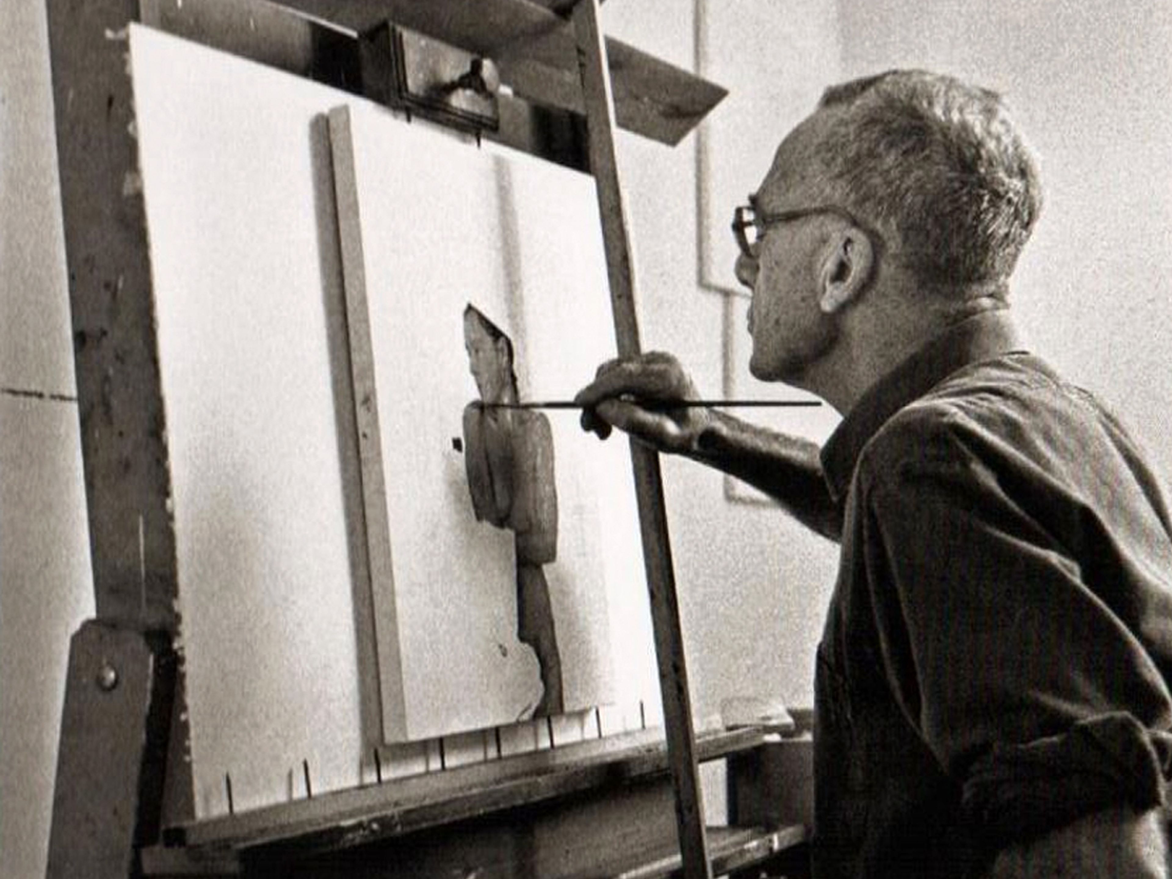 Gerhard Richter while painting Kl. Badende (Small Bather), 1994. Photo by Benjamin Katz