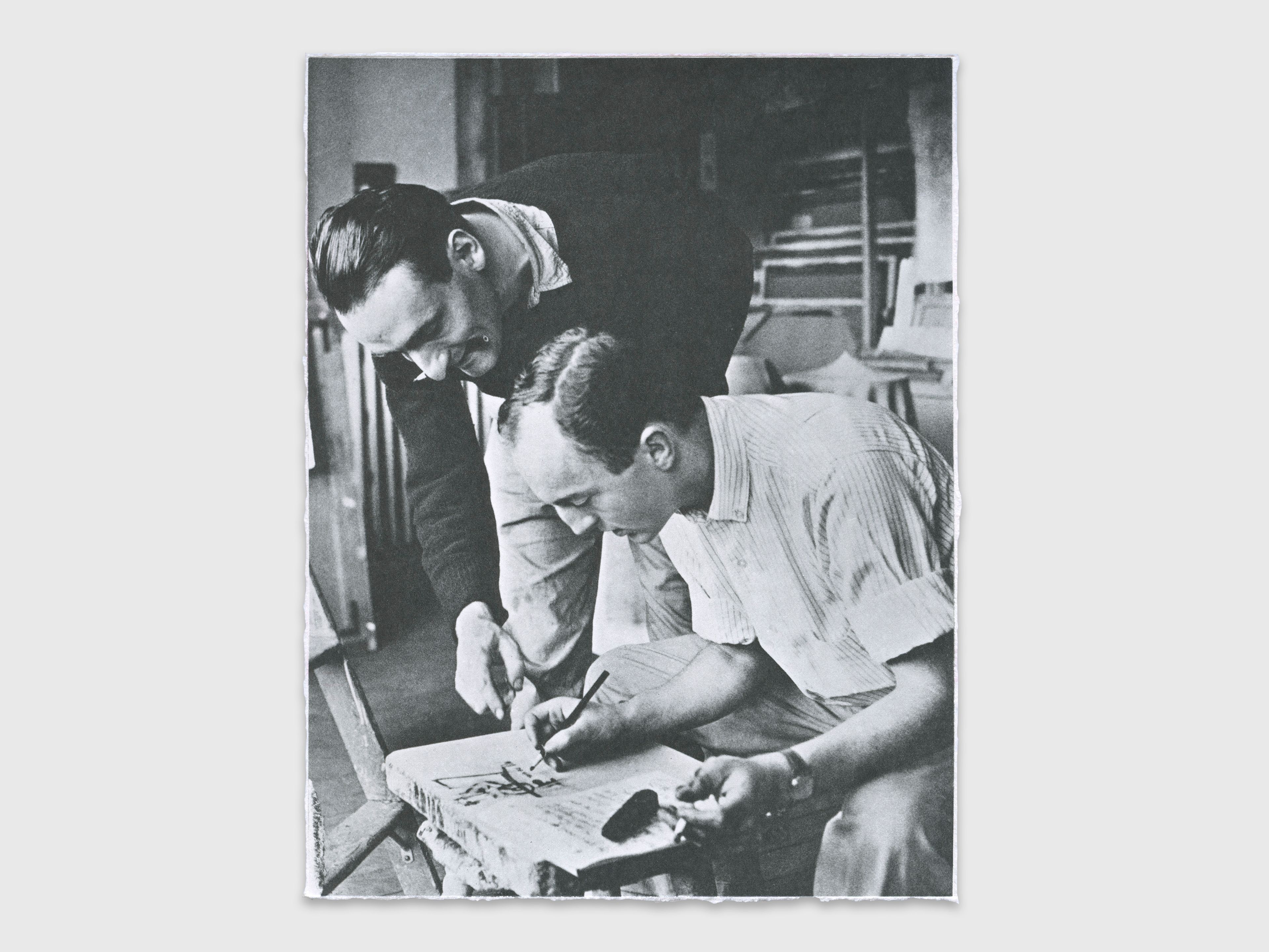 Frank O’Hara and Larry Rivers at work on Stones in 1958. Photograph by Hans Namuth