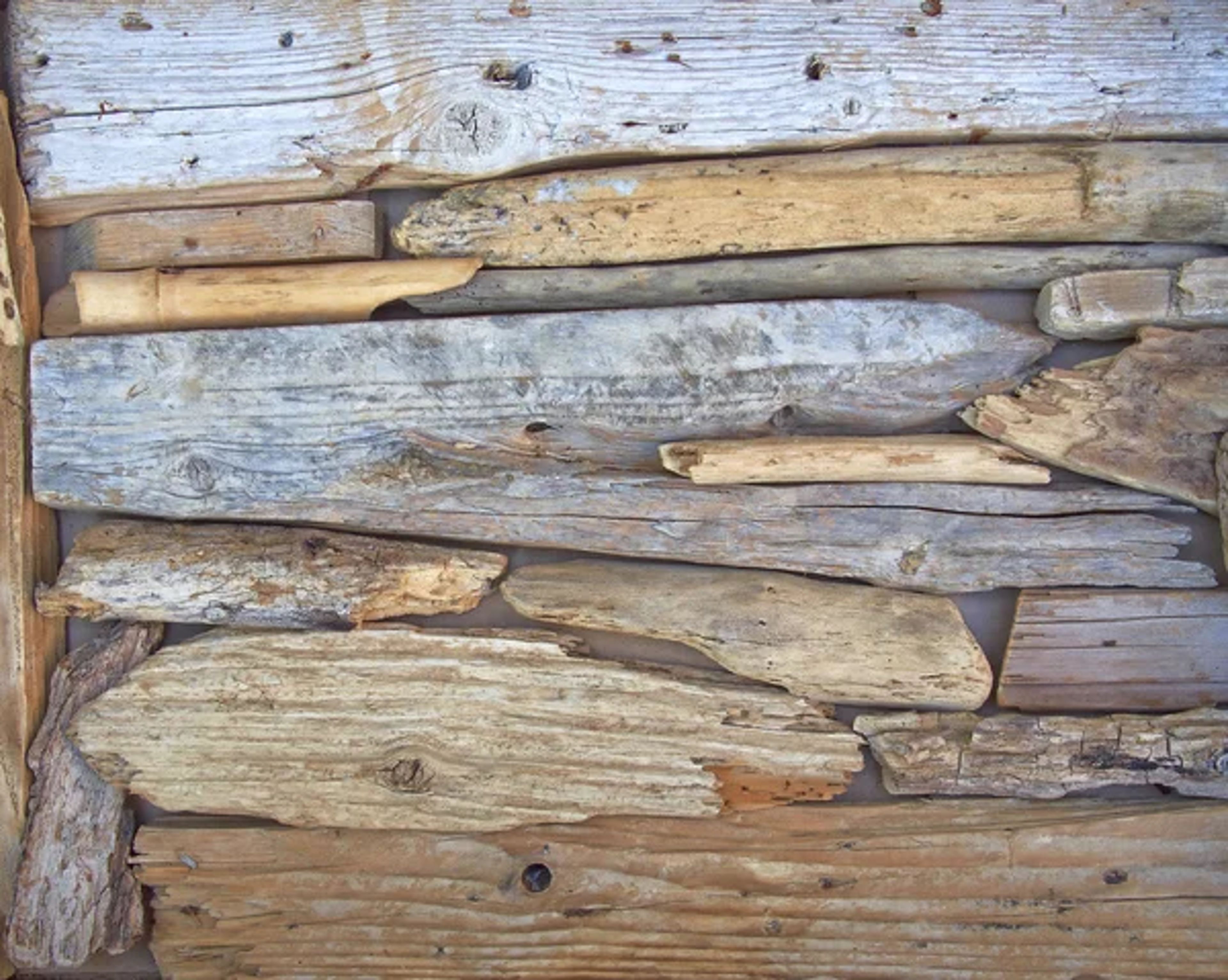 “[The driftwood came from] the South Seas, the Caribbean, the North Atlantic. It all washed up on this tip of Cape Cod. Some had bits of paint, half worn off. Some had rust stains or colors soaked in. Industrial boards were washed nice and gray. Nail holes added texture and color where rusted nails had oxidized the wood. There was an interesting history in those pieces—who had touched them, where they had come from.”