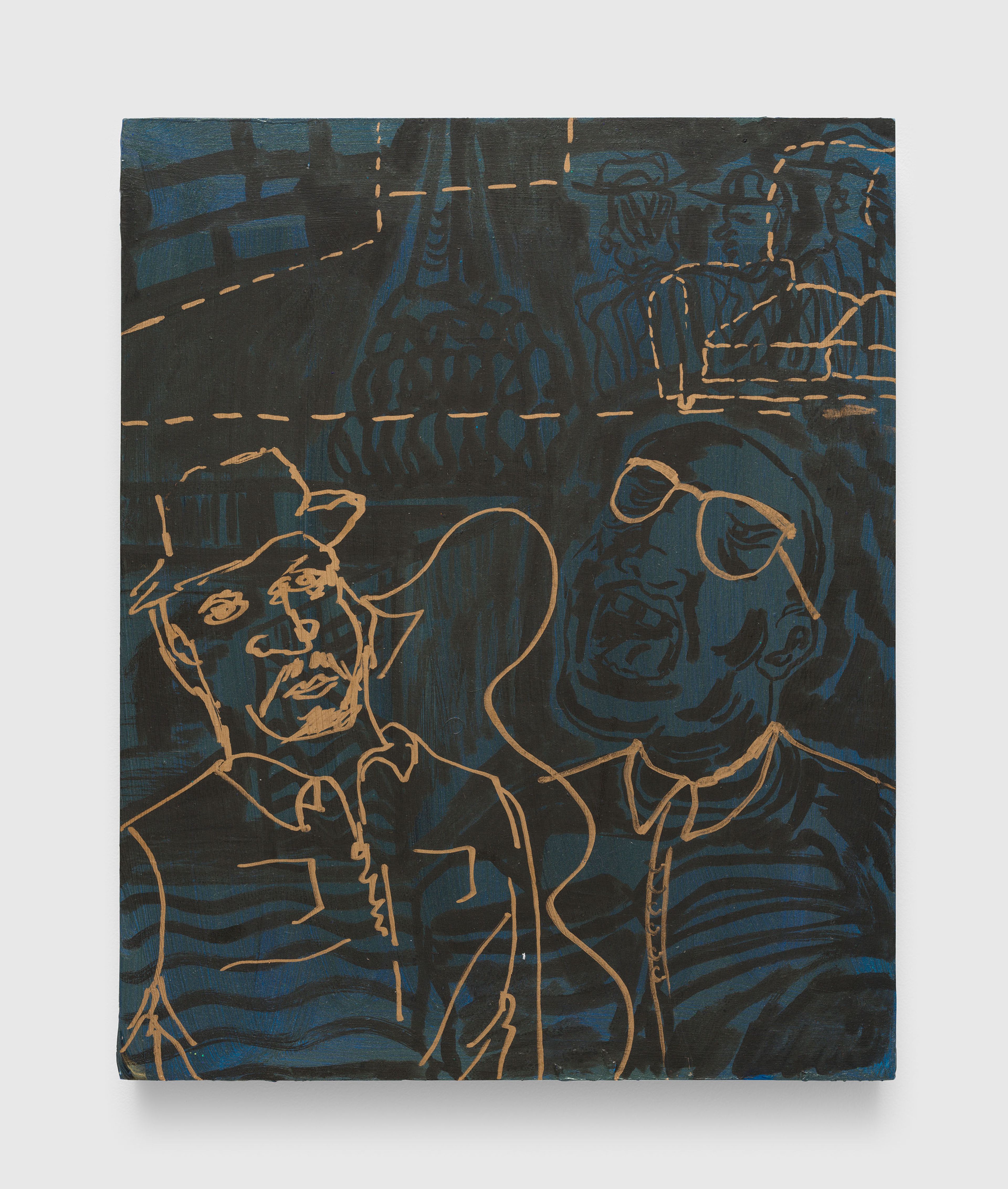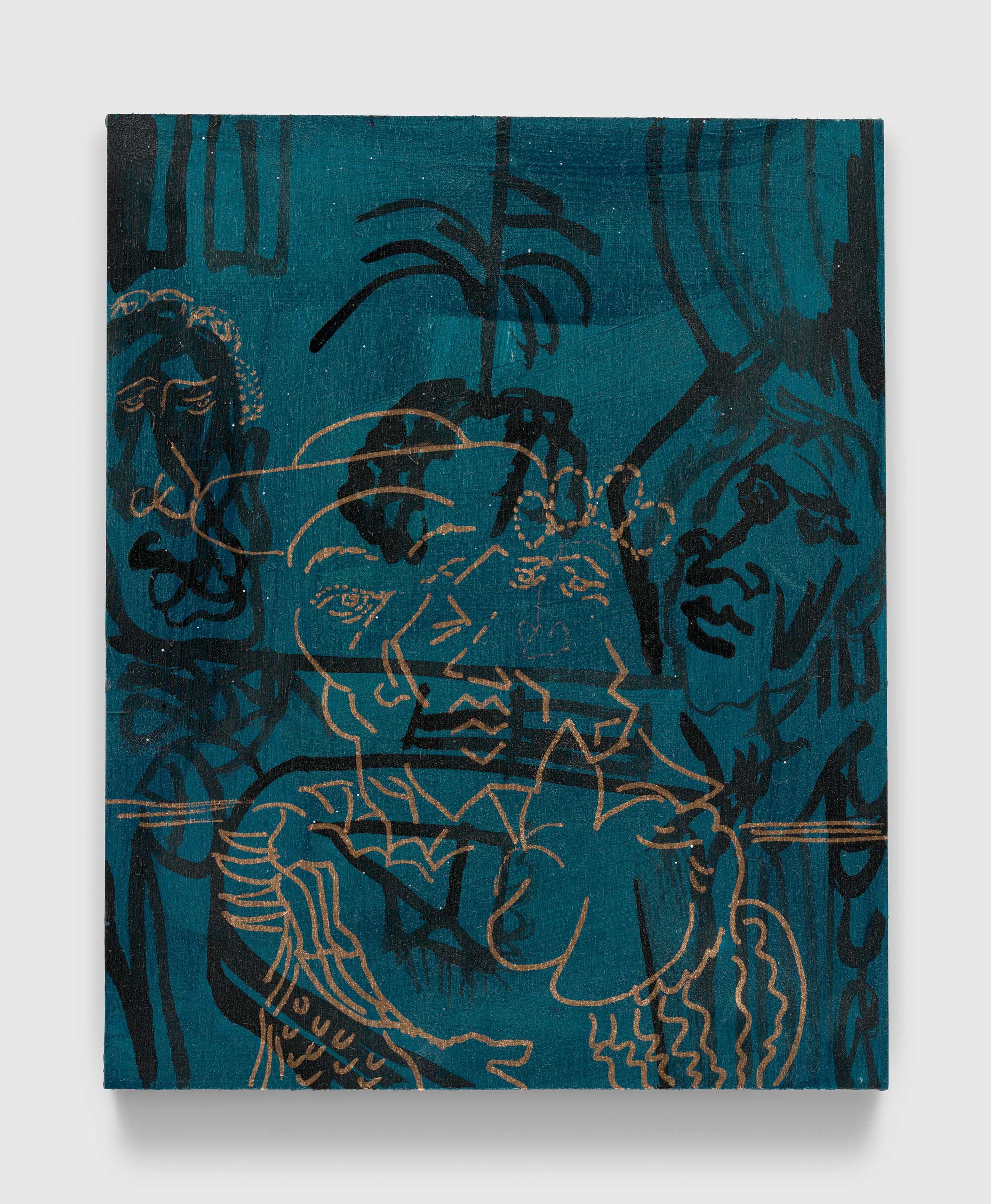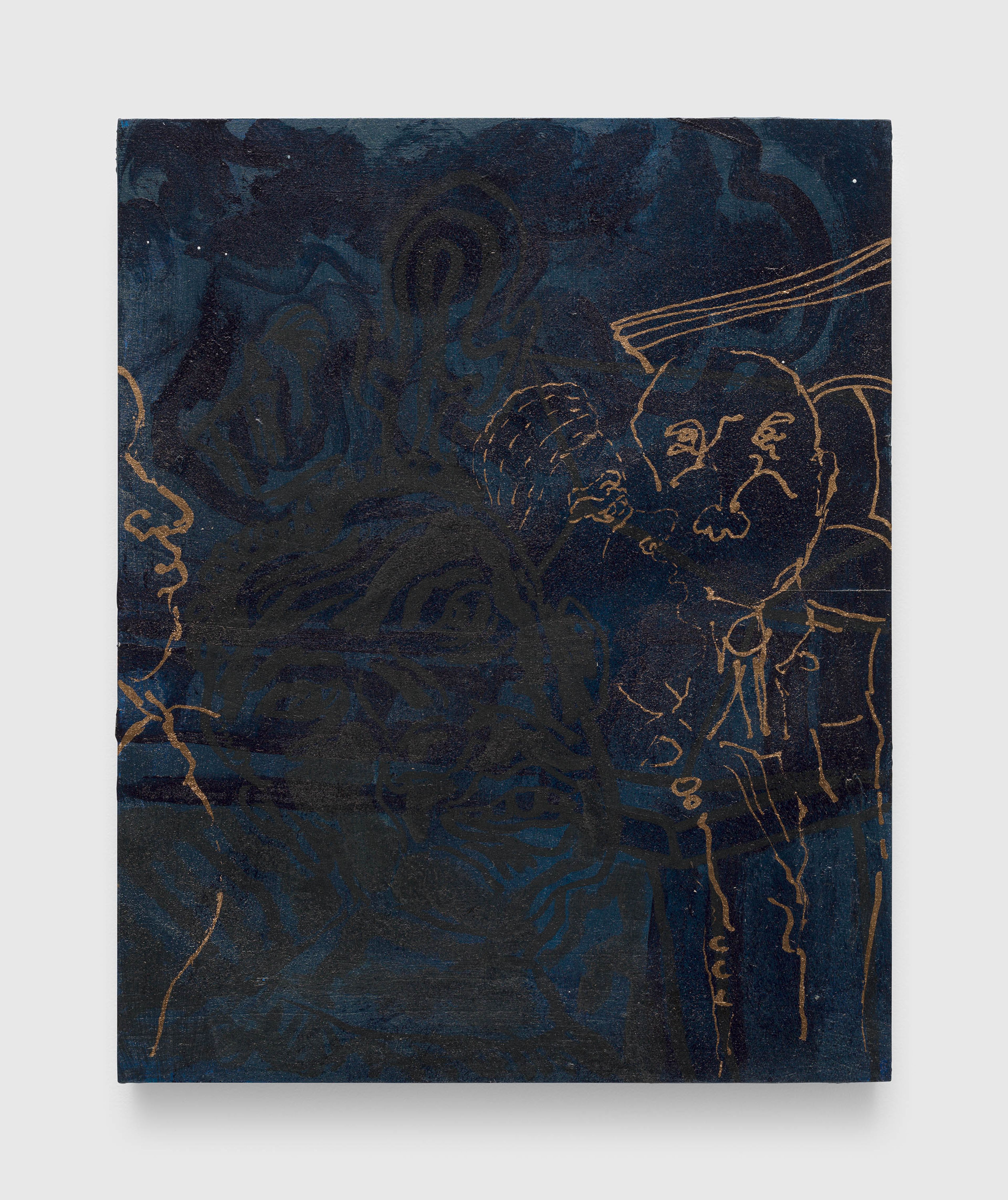 Acrylic, gesso, Flashe, and metallic marker on canvas