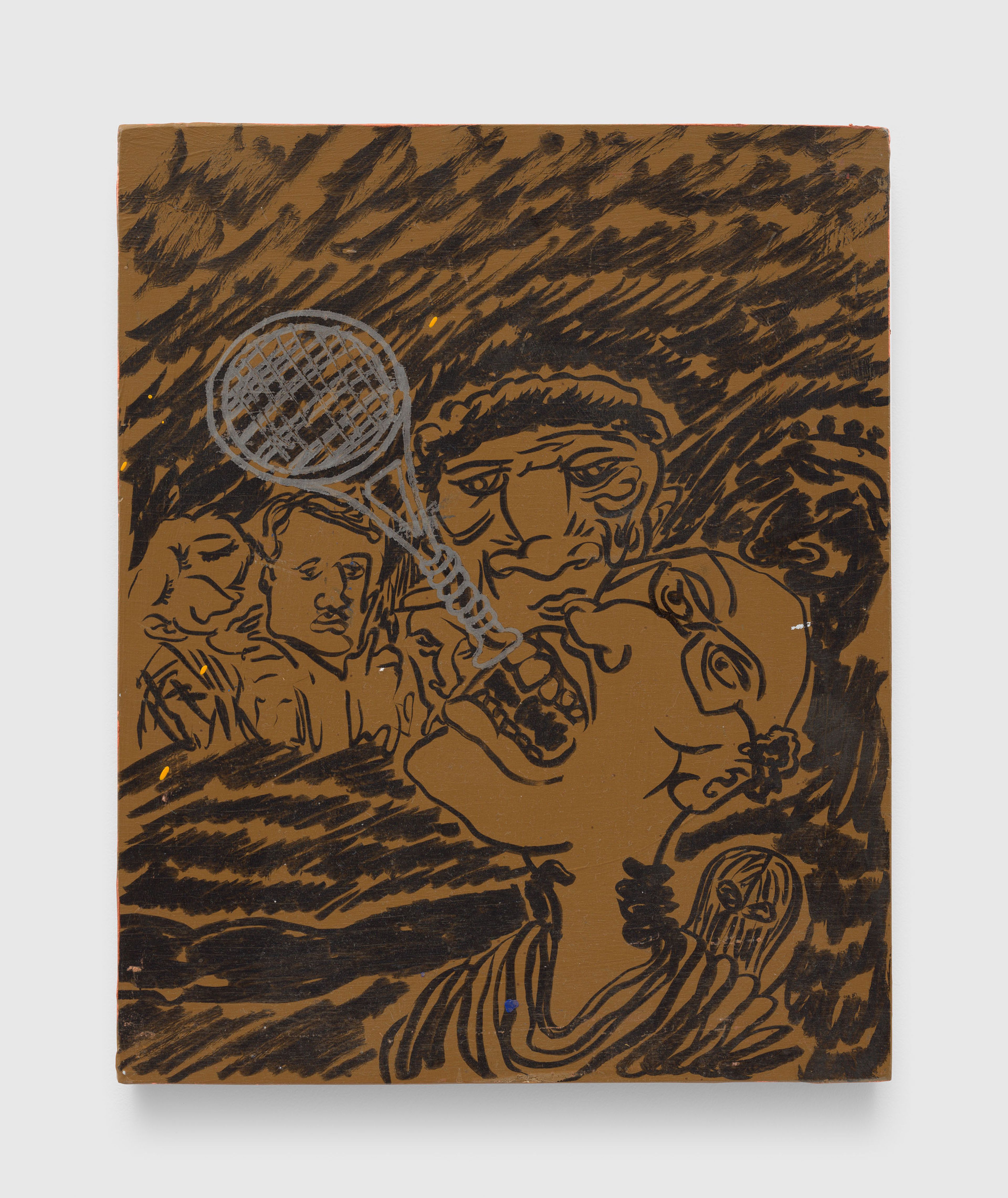 Ink, gesso, Flashe, and chrome pen on wood panel